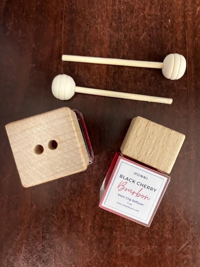 Elevate your driving experience with the enchanting scent of our Black Cherry Bourbon car vent clip diffuser. Our custom blend of Black Cherry and Bourbon elevates the popular cherry car freshener scent. Your Black Cherry and Bourbon vent clip diffuser offers a strong and long-lasting fragrance, guaranteed to keep your automobile smelling great for at least 6 weeks. With an attractive wooden cube top and sturdy dual wooden diffuser sticks, this diffuser is both functional and stylish.